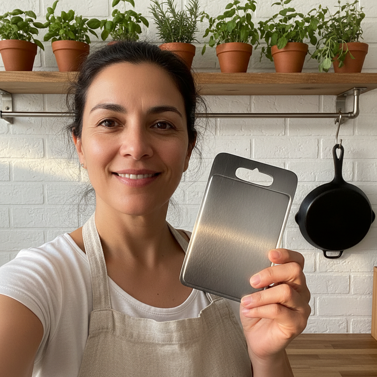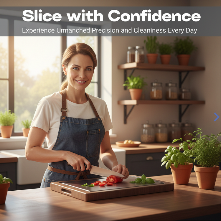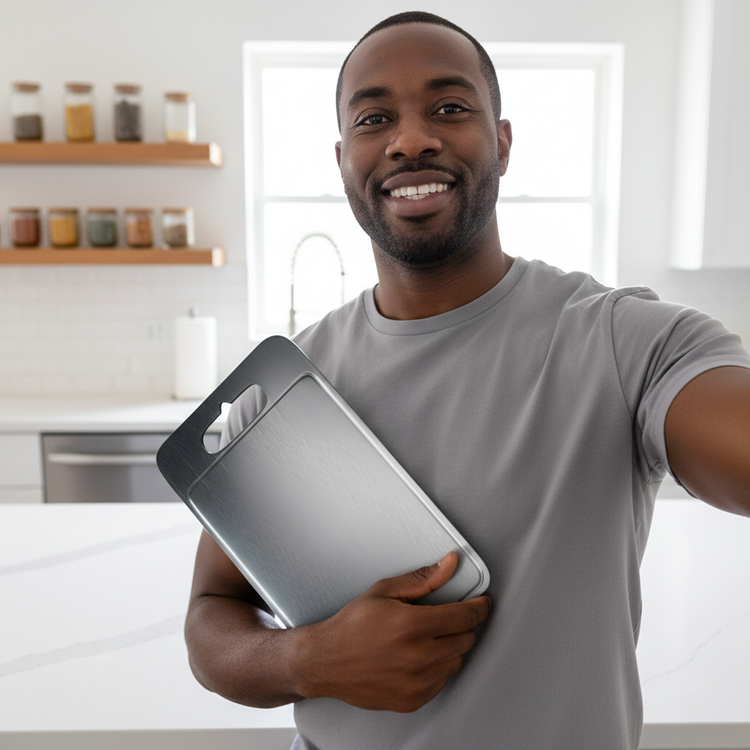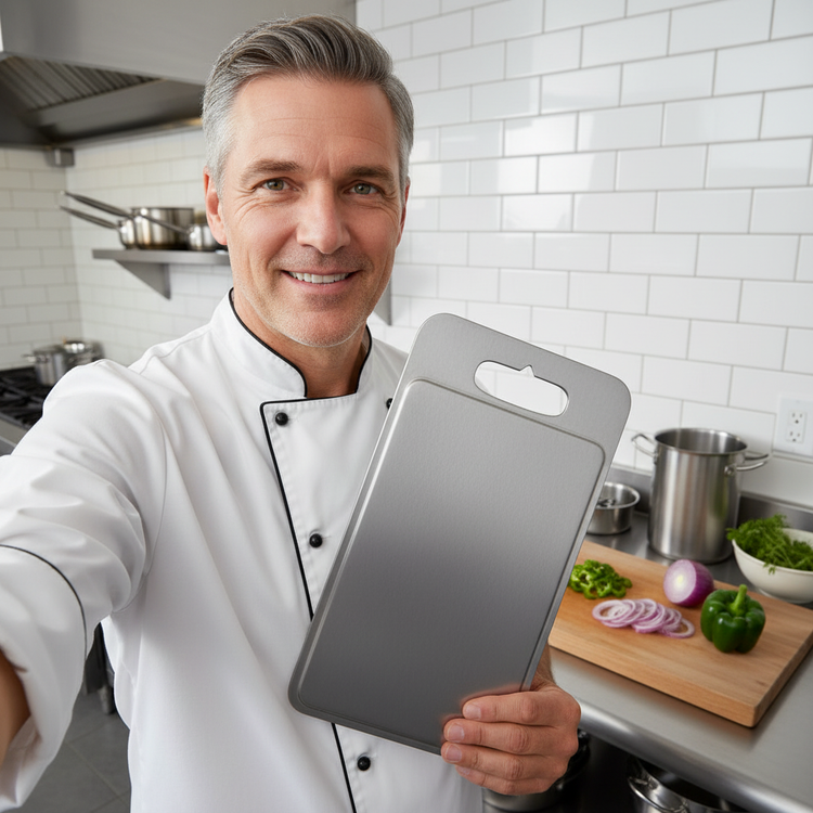 Discover the ultra-durable, knife-friendly titanium cutting board that keeps your counters spotless and knives sharper than ever. Perfect for home cooks and pros alike.